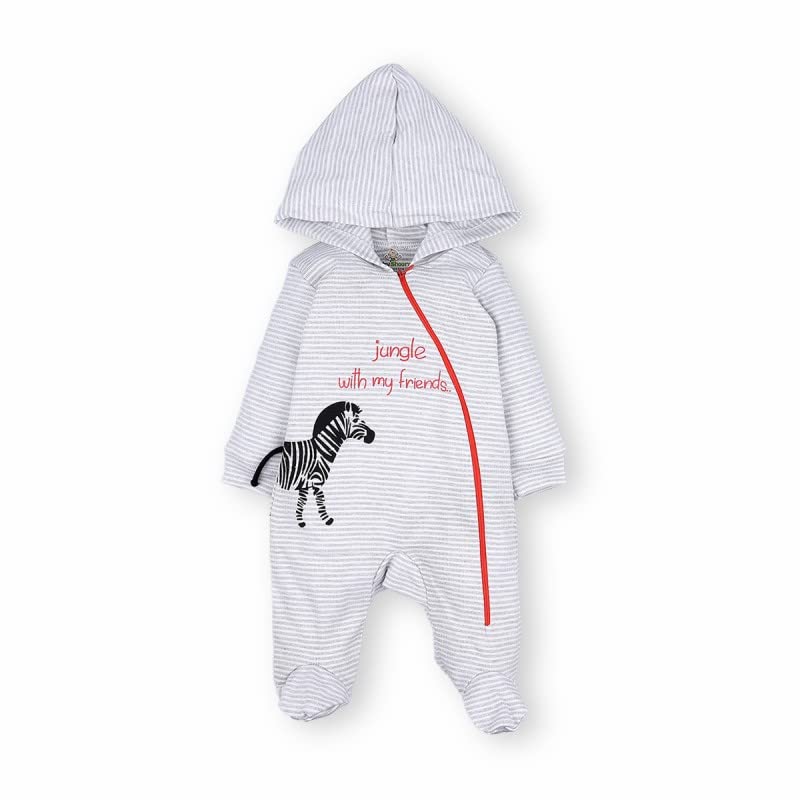 Generic - Cotton baby jumpsuit with a hood, (Gray, Size 1 from 3-6 Months)