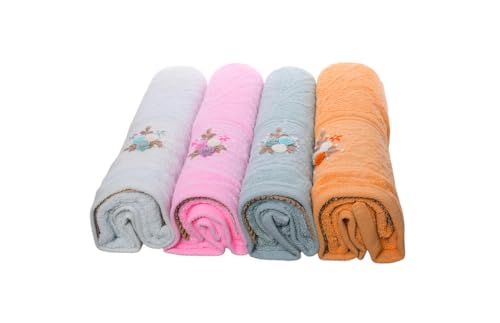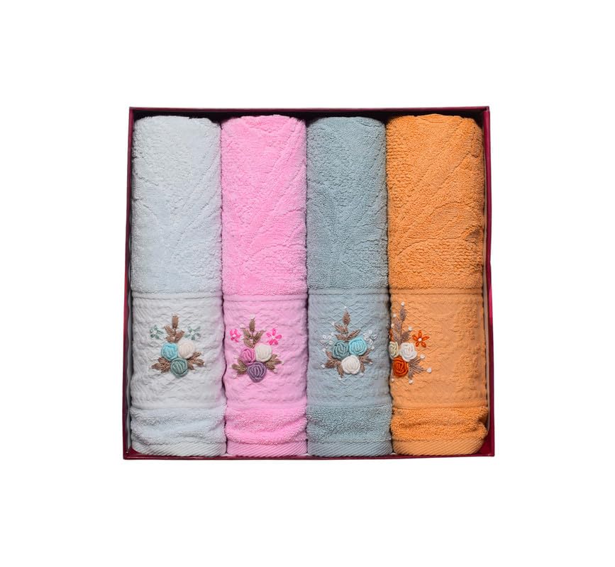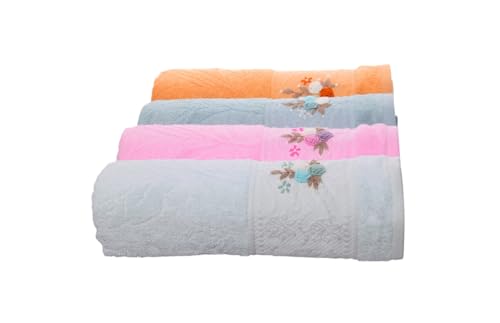 Generic - Cotton Bath Towel With Flower Designs Set, 4 Pieces, 60 X 120 Cm - Multicolor