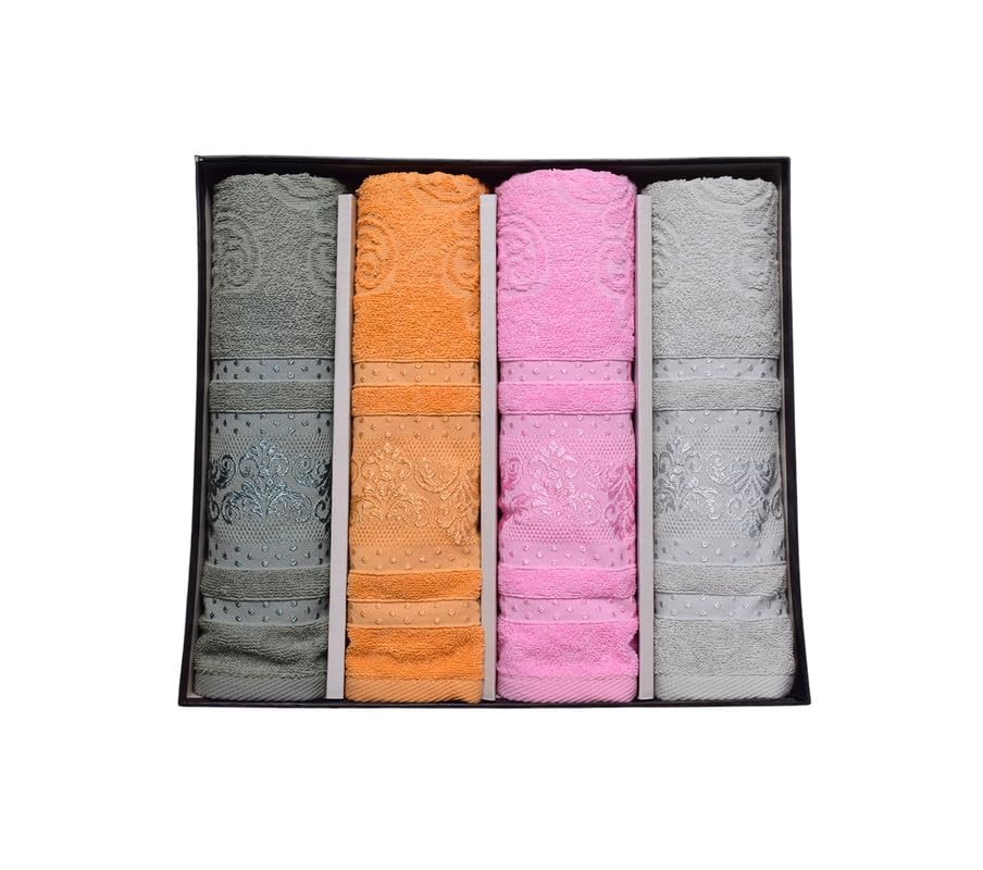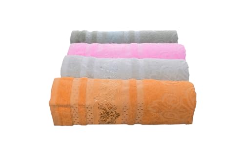 Generic - Cotton Bath Towel With Simple Design Set, 4 Pieces, 60 X 120 Cm - Multicolor - 140