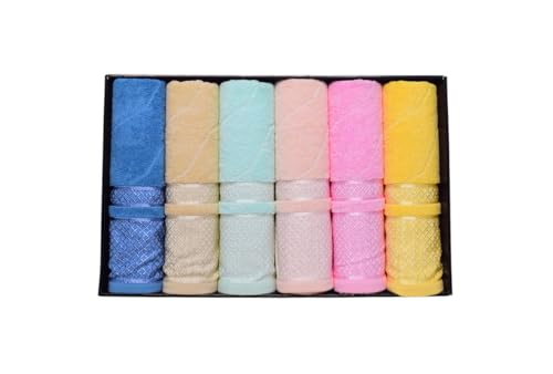 Generic - طقم مناشف حمام قطن بتصميم بسيط، 6 قطع، 50 × 100 سم - متعددة الالوان - 143
