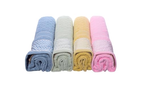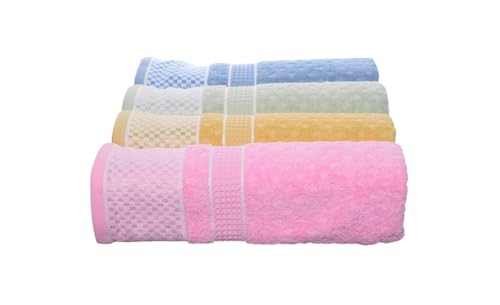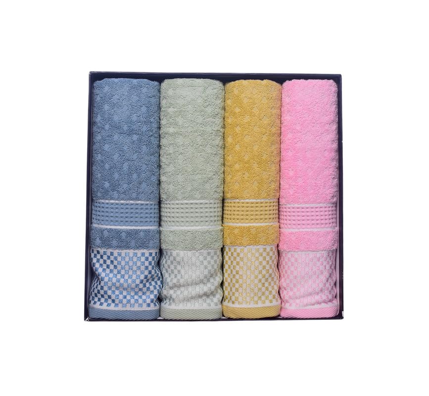 Generic - طقم مناشف حمام قطنية مع مربعات صغيرة، 4 قطع، 60 × 120 سم - متعددة الالوان - 197