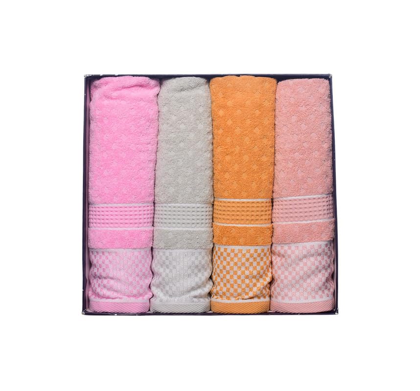 Generic - Cotton Bath Towel With Small Squares Set, 4 Pieces, 60 X 120 Cm - Multicolor - 198