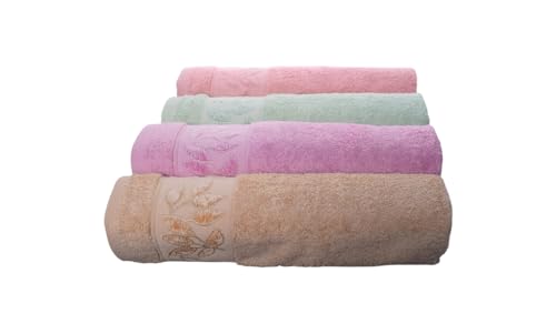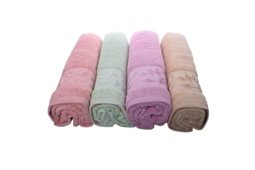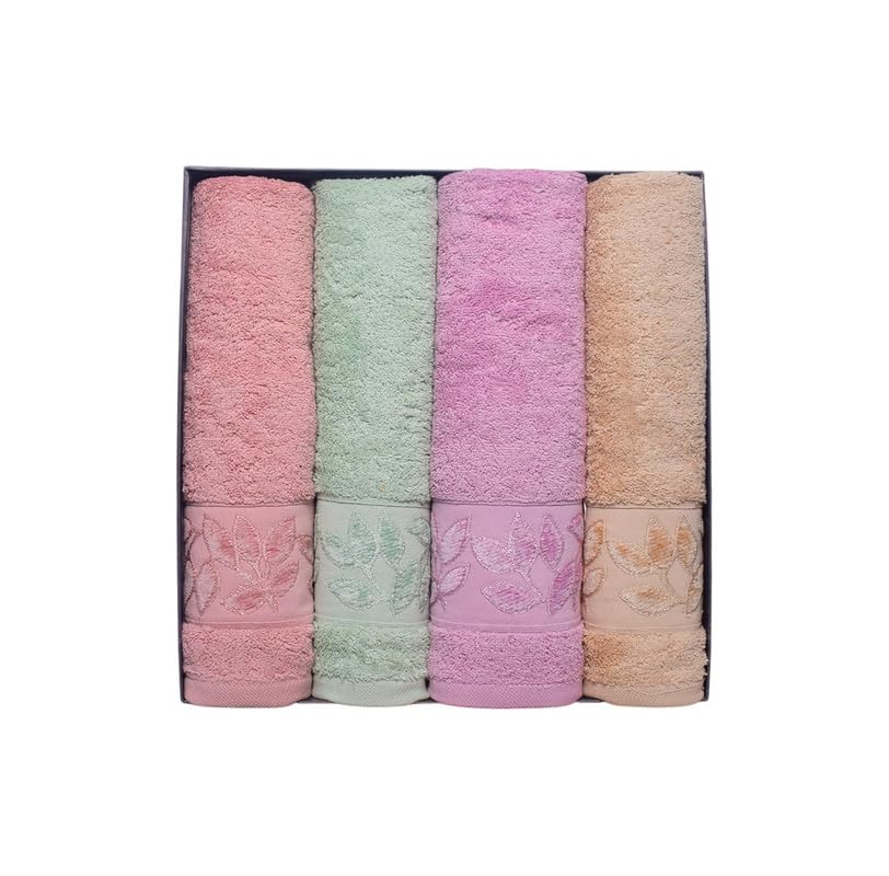 Generic - طقم مناشف حمام قطنية بتصميم اوراق شجر، 4 قطع، 60 × 120 سم - متعددة الالوان