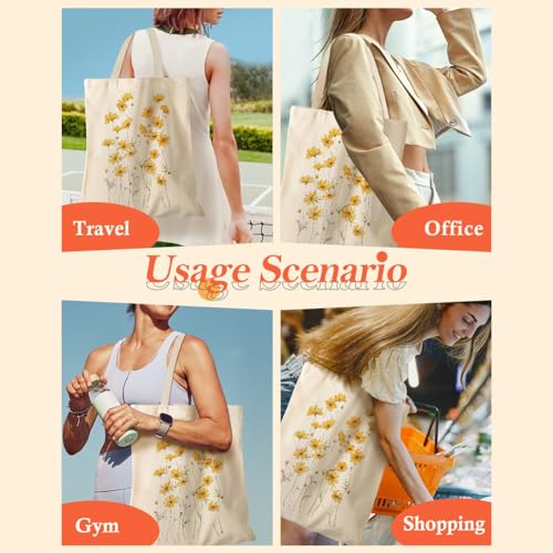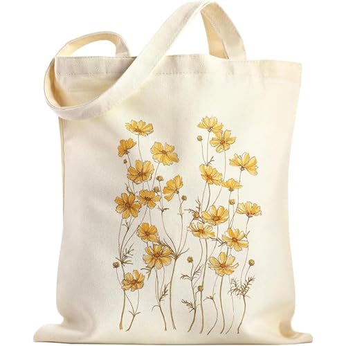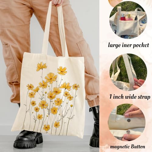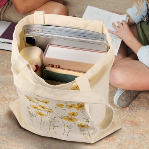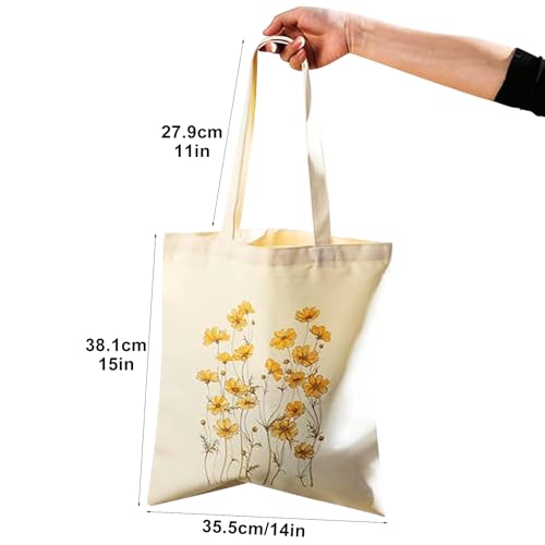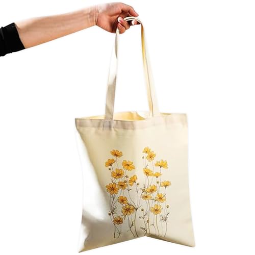 Fengshengli - Cotton Canvas Bag Washable Foldable Flower Pattern Shopping Packet Reusable Shopping Bag Reinforced Fabric Tote Bag for Women, Men, Students, Staff Carry Groceries
