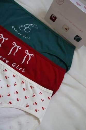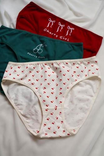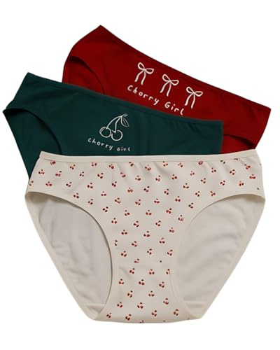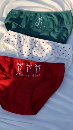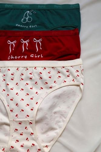 Generic - بانتي قطن - طقم قطن مطبوع عليه Cheery Girl - عبوة من 3 قطع - احمر - ابيض - اخضر - مقاس 4XL