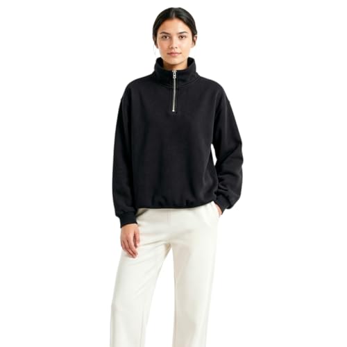 HAZ - Cotton Relaxed Fit Quarter Zip Sweatshirt