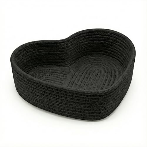 Generic - Cotton Rope Storage Basket, Heart Shaped, Woven Organizer for Makeup, Baby Items, Nursery Decor, 25 x 23 cm (Black)