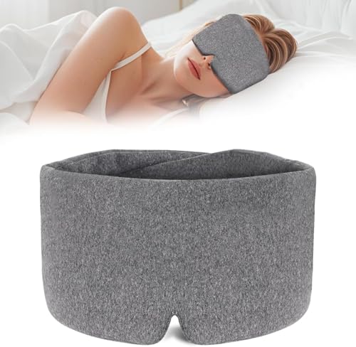 fashion mania - Cotton Sleep Eye Mask for Women Men - 100% Blocking Light Travel Blindfold, Soft Zero Pressure Grey Eyes Cover with Adjustable Velcro Strap for Side Sleeper Night Sleeping