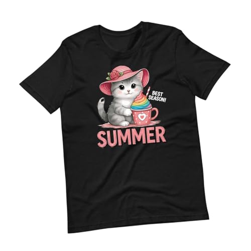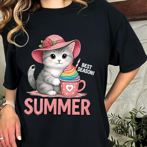 Generic - Cotton T-shirt for women, white Cotton T-shirt, Half sleeve shirt, Cat Design- Best season, Gift for her/him