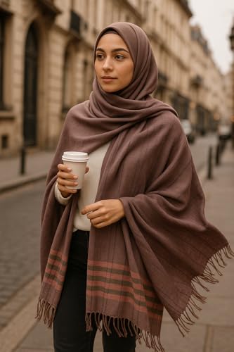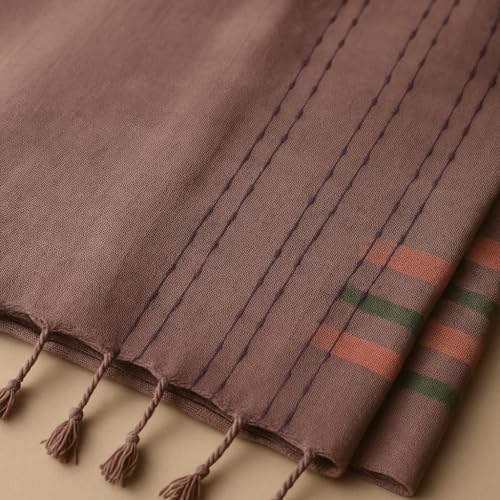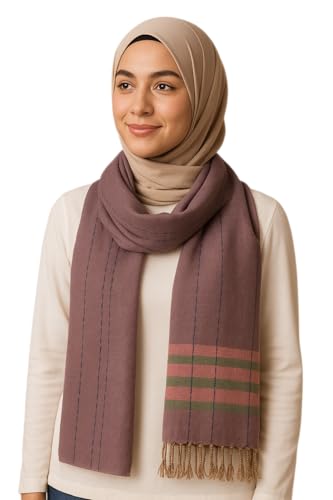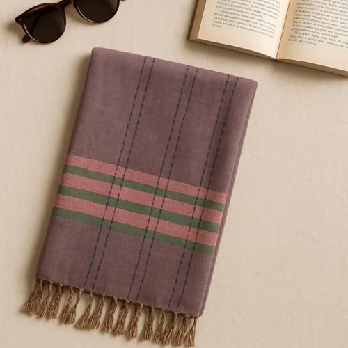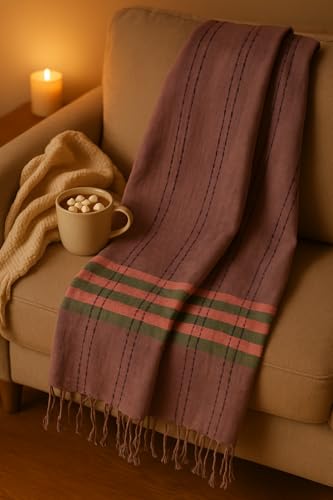 Generic - Cotton Throw Blanket with Stripes, 210 x 75 cm, Mauve Brown with Fringe Tassels