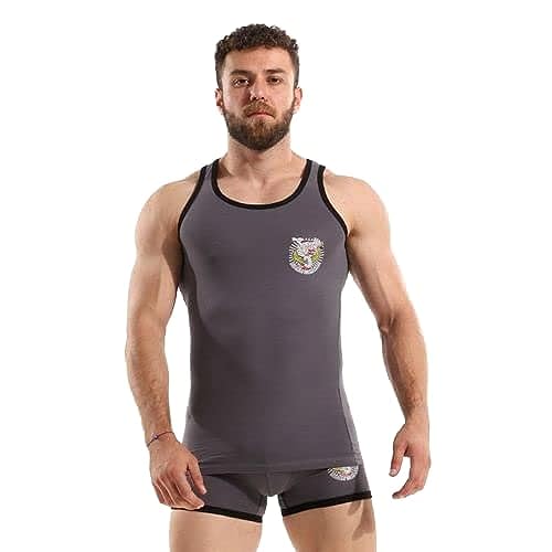 Cottonil - طقم بوكسر وفانلة للاولاد بطبعة من القطن المريح- لون رمادي داكن، مقاس 5