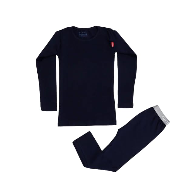 Cottonil - Cottonil Boys Cotton Stretch Long Sleeve & Pants Winter Thermal Set (Navy Blue, 9-10 Years)