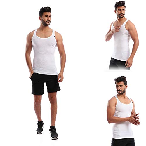 Cottonil - فانلة قطونيل حمالة قطن مضلع 3 قطع - ابيض، M، للرجال