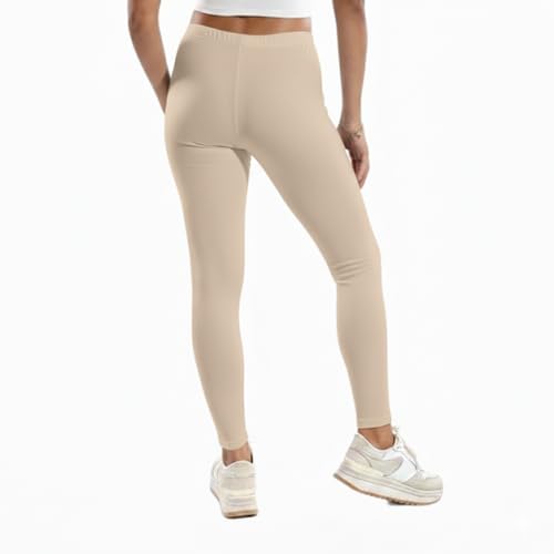 Cottonil - Cottonil Women's Cotton High Waisted Leggings, Full Length, Stretchy Tights
