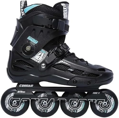 COUGAR - حذاء تزلج كوجار موديل 509 للبالغين قابل للتعديل مع 4 عجلات مضيئة من البولي يوريثين وشفرات دوارة للاماكن الخارجية والداخلية للاولاد والبنات والمبتدئين، اللون: اسود، المقاس: 44 من كوجار
