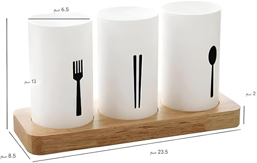 Generic - Countertop Utensil Holder - Elegant and Functional Storage for Spoons, Forks, Knives, and Tableware with a Stable Wooden Base for Easy Access
