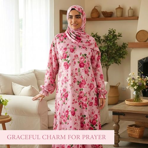 Country charm - COUNTRY CHARM Isdal Prayer Dress with Scarf – Armenian Satin Fabric, Fleur Floral Design, Ruffled Sleeves, Luxury Abaya Set, Muslim Dress for Women, Elegant Prayer Abaya, Spiritual Gathering