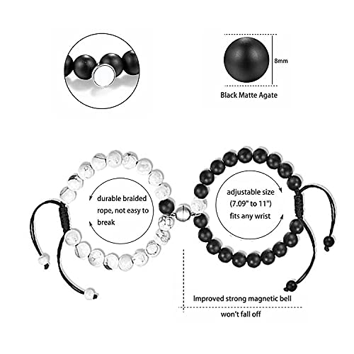 TINGYA - Couple Magnetic Bracelets Attract Mutual Eternal Love Distance Pairing Relationship Beaded Bracelets Gifts for Women Men