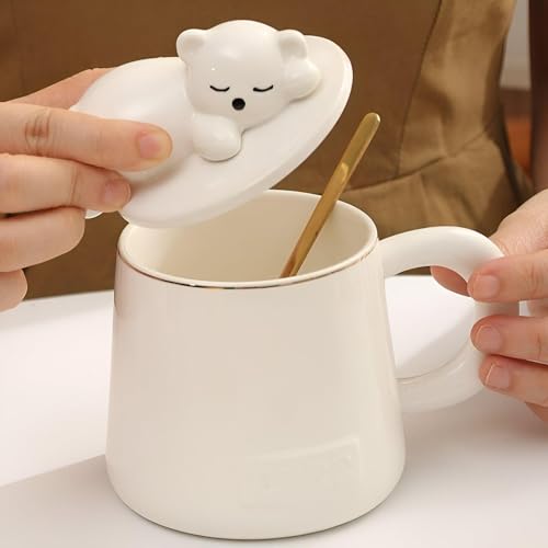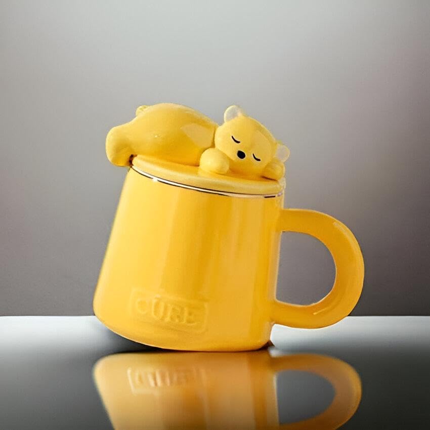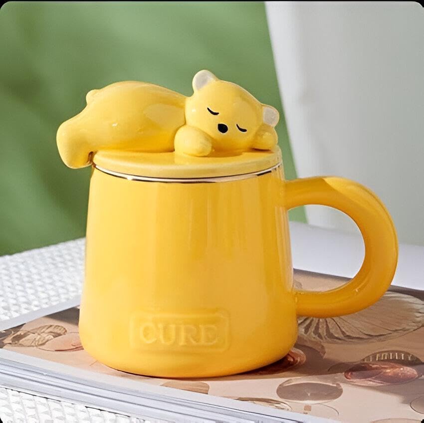 Generic - مج بورسلين بتصميم دب لطيف ونمط رائع للزوجين، مثالي للأزواج، متعدد الاستخدامات للمشروبات الساخنة والباردة، للاستخدام في المنزل أو المكتب أو للتقديم (أصفر)