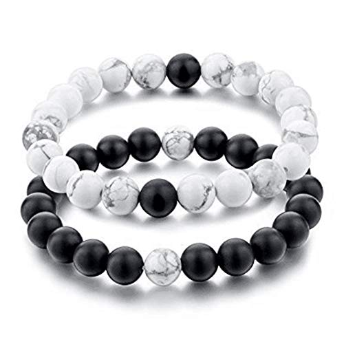 Other - كوبلز هيز اند هيرز زوج سوار مزين بتركواز ابيض وحجار العقيق بلون اسود باهت 2068، للجنسين