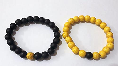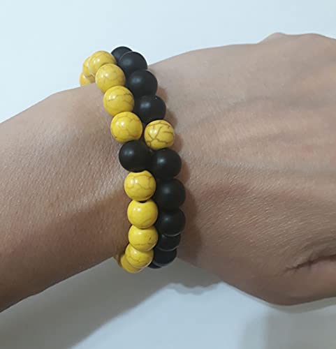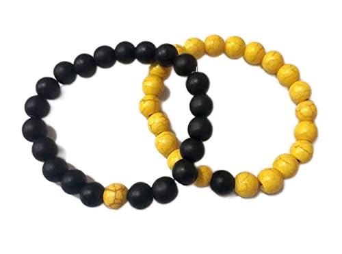 Other - كوبلز هيز اند هيرز زوج سوار واسعة مزين بتركواز اصفر وحجار العقيق بلون اسود باهت من قطعتين، للجنسين
