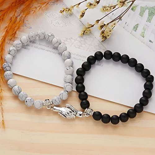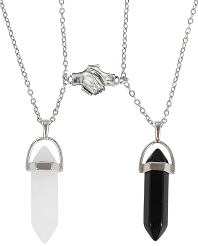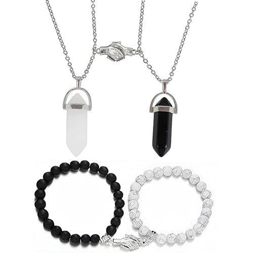 Generic - Couples Matching Crystal Necklaces and Bracelets Set, Hands and Pendant Design, Black and White