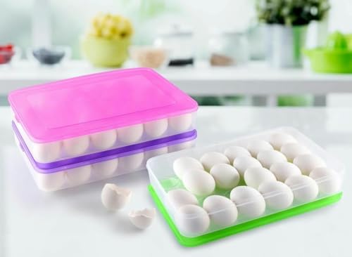 generic - حامل بيض مغطى للثلاجة، علب طعام بلاستيكية وحاويات البيض، صندوق تخزين بيض محمول قابل للتكديس