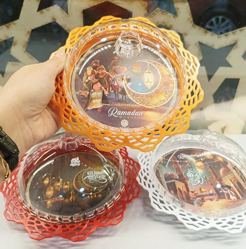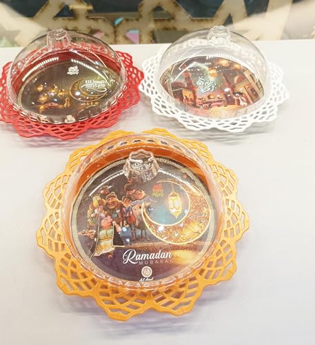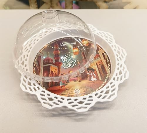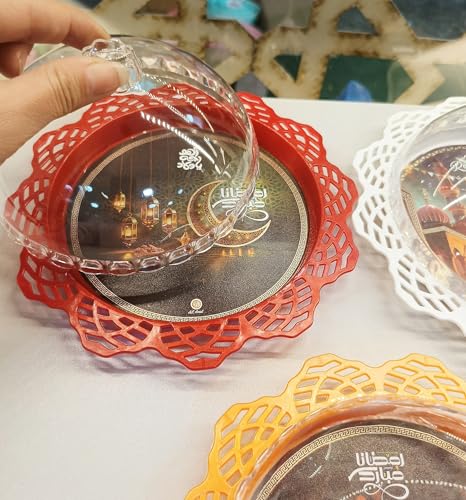 - ELEGANT SERVING WITH CLEAR ACRYLIC LID: The transparent cover protects food from dust and insects while allowing full visibility, enhancing presentation for dates, sweets, snacks, and desserts during Ramadan gatherings, family meals, and special occasions, keeping food fresh and hygienic.