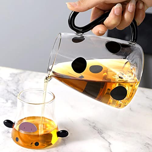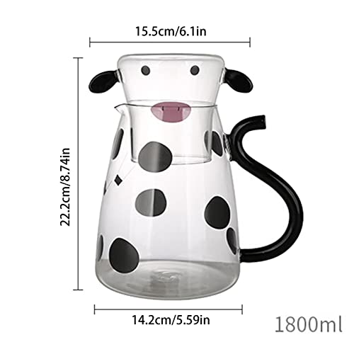 MuginoHo - Cow Glass Water Pitcher With Glass Cup, Cute Cow Glass Carafe Set With Glass Mug Cow Glass Tea Pitcher Kettle Milk Jug Water Carafe For Midnight Drink (1800ml)