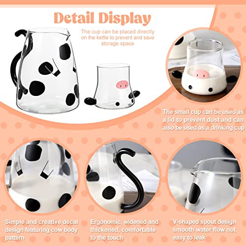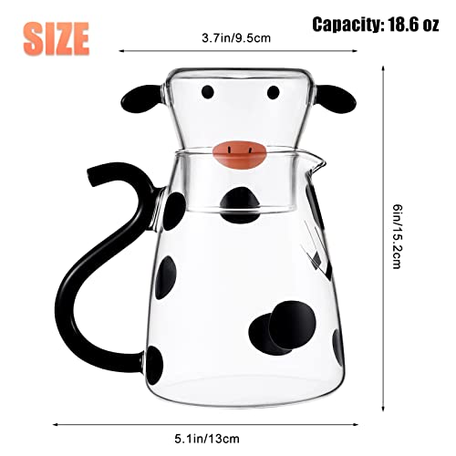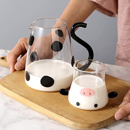 AMOBON - Cow Glass Water Pitcher with Glass Cup, Small Glass Carafe for Milk Water Tea Lemonade Juice, Borosilicate Glass Water Jug Beverage Bottle for Home Office (18.6 oz)
