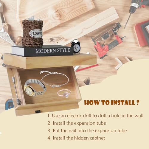 - Hidden Storage Compartment:This innovative floating shelf features a discreet secret drawer with magnetic locking, providing secure storage for valuables while maintaining a seamless appearance in your home decor.