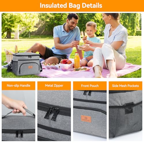 - DURABLE MATERIAL - The outside of the cooler bag is made of waterproof and stain-resistant 600D oxford fabric to ensure durability, waterproof and easy cleaning. The inner lining of the insulated lunch bag is made of PEVA film, which is waterproof, stain-resistant and abrasion resistant, so it will not melt when the bag is filled with hot food, so you can be sure to put your food directly into the bag!