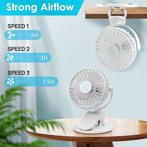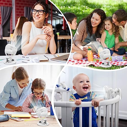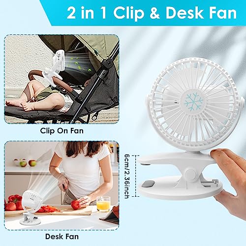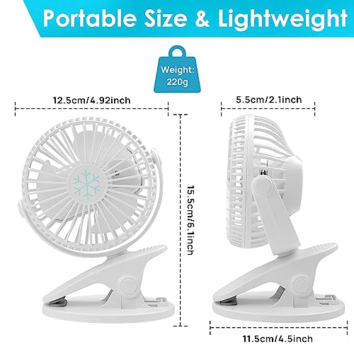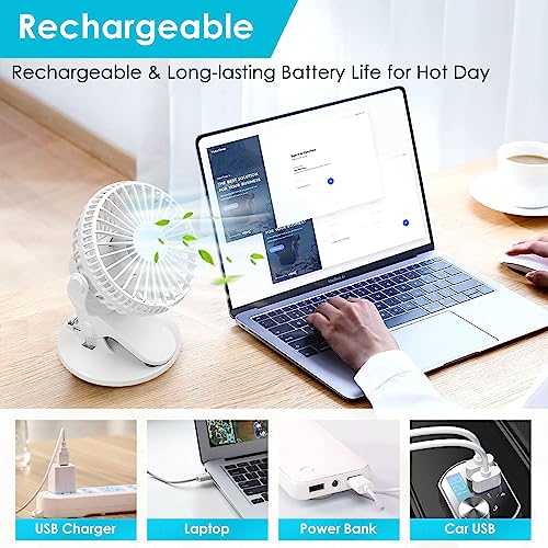 COZII - كوزي مروحة مكتب صغيرة بمشبك قابلة لاعادة الشحن بمنفذ USB بـ3 سرعات للدوران 720 درجة صامتة للمكتب وغرفة النوم وعربة الاطفال أبيض