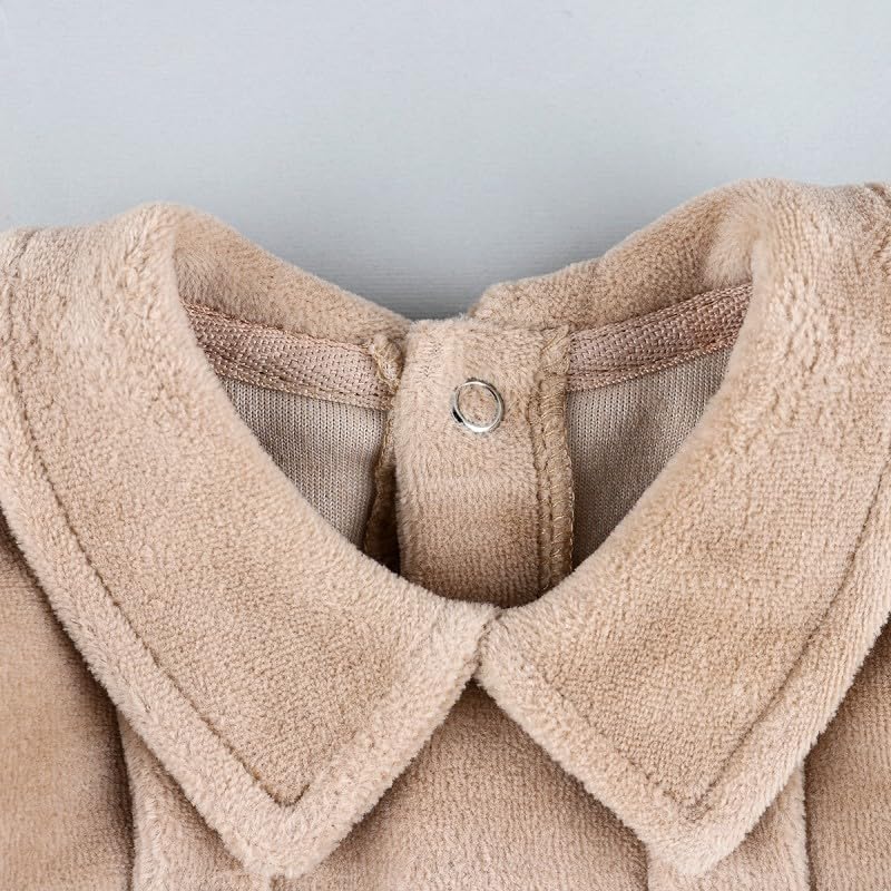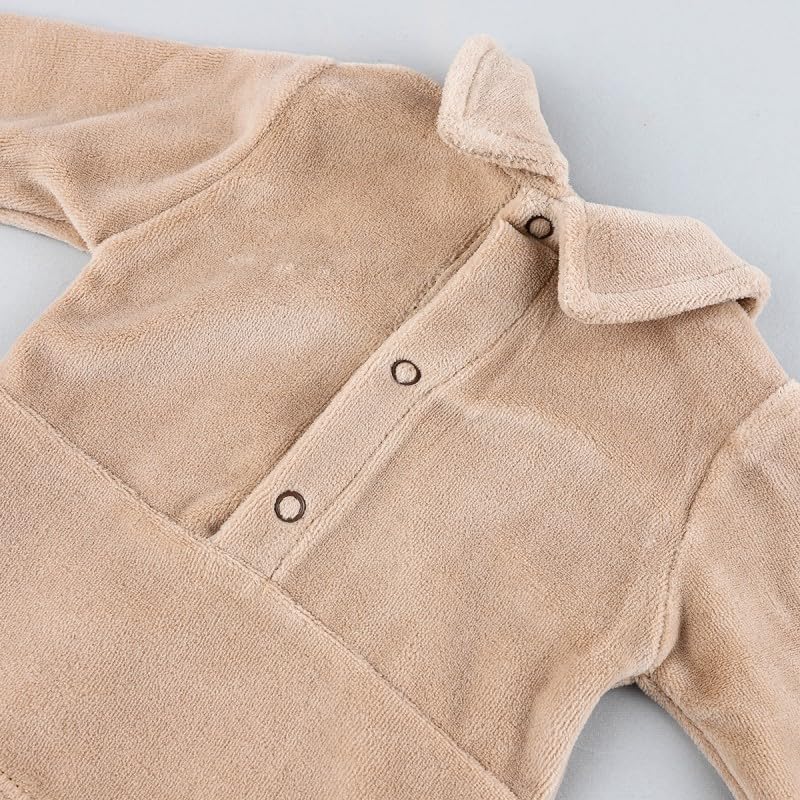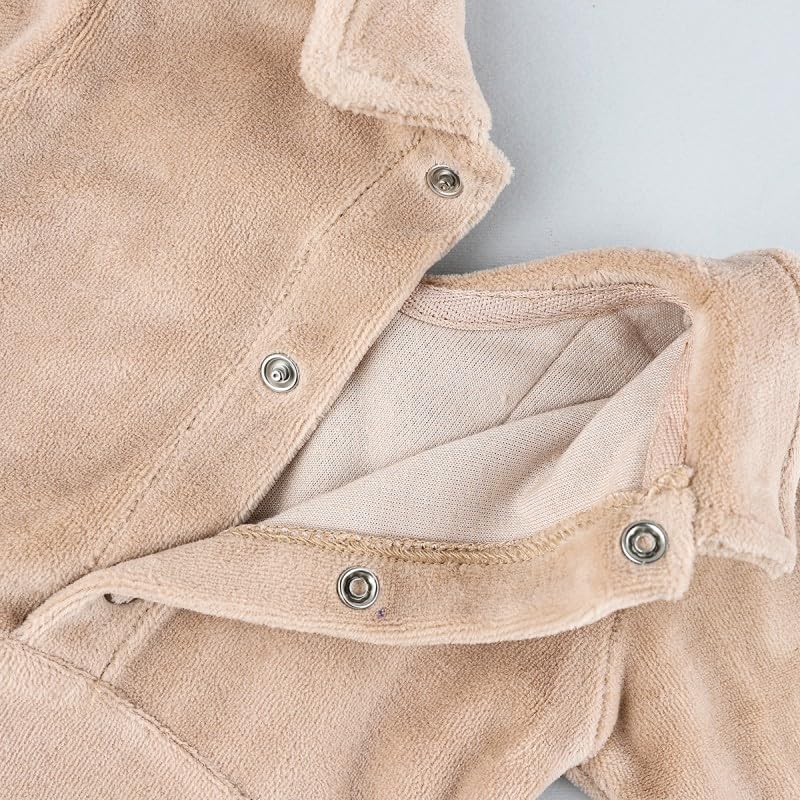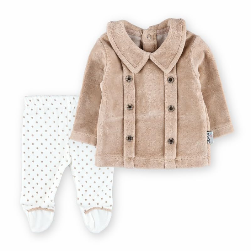 Generic - طقم بيجامة بيبي من كوزي مع جاكيت مخملي بيج وبنطلون منقط | ملابس نوم ناعمة ومريحة | 0-3 اشهر