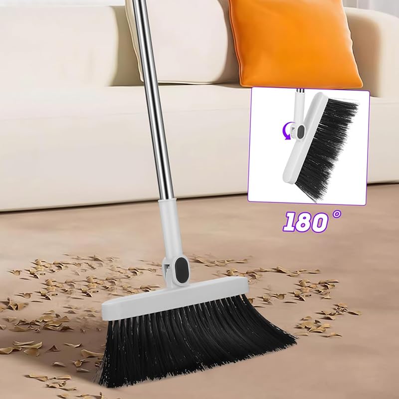 - 【180º Rotating Broom】Easily sweep hard-to-reach areas with the 180º rotating broom head.Perfect for corners,under furniture,tight spots,this versatile broom is ideal for home,kitchen,office,indoor/outdoor spaces