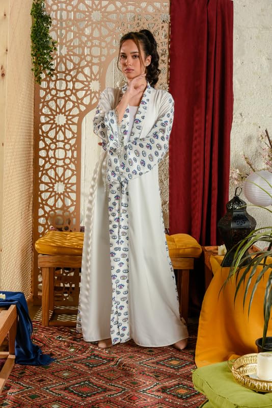 COZY UP IN STYLE - كوزي اب ان ستايل: قفطان مطرز للنساء باللون الجملي والذهبي - بشت تصميم شرقي أصيل تقليدي بطول كامل مثالي للمناسبات الخاصة والاسترخاء