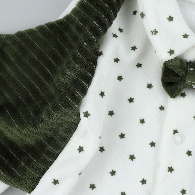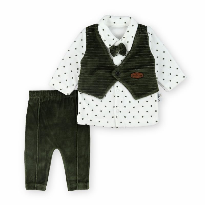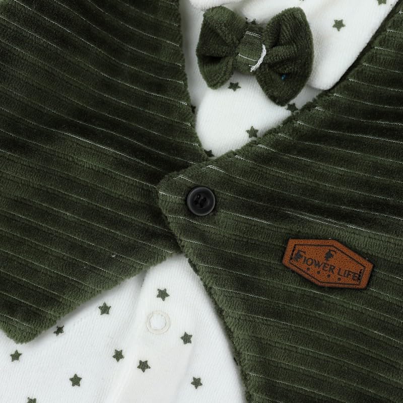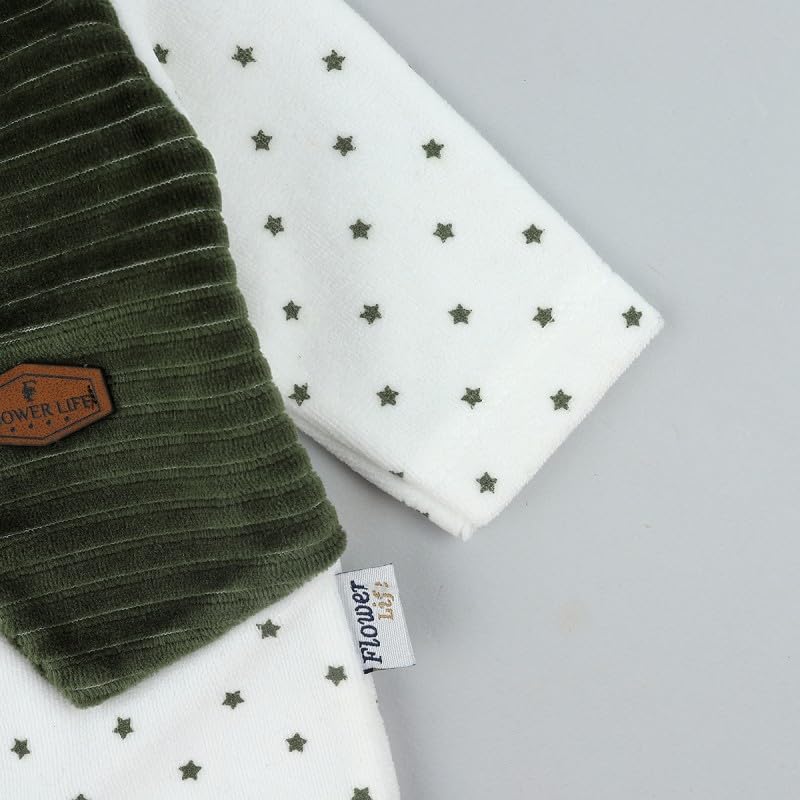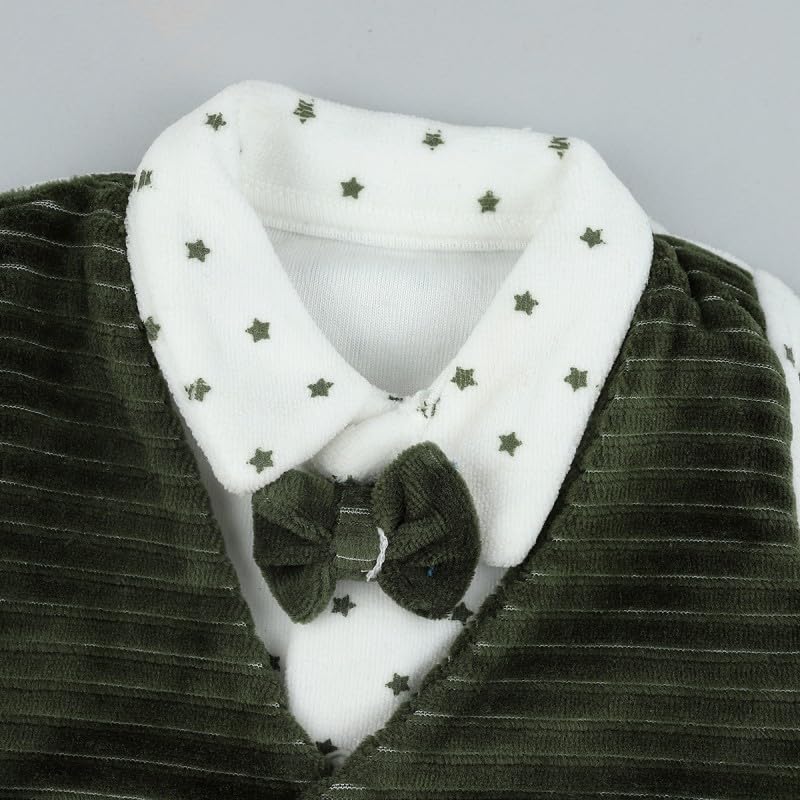 Generic - Cozy Velvet Baby Boy Set in Dark-green & White | 3-6 Months | Flower Life