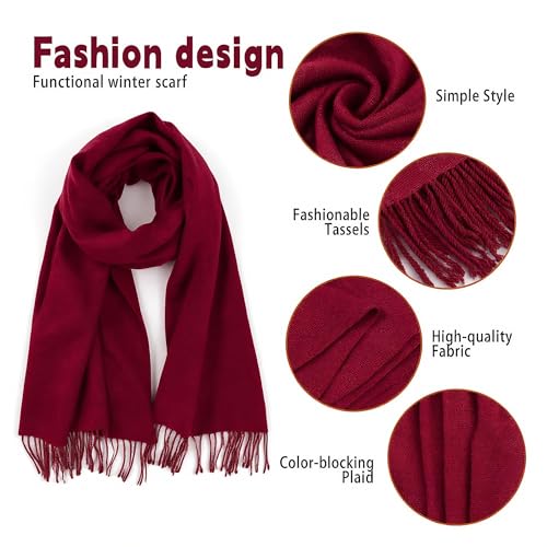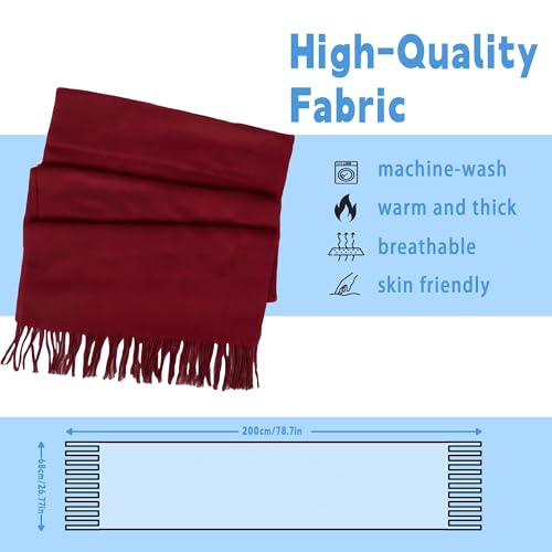 KASTWAVE - وشاح شتوي مريح، وشاح شال محبوك مكتنز ناعم ودافئ مع شراشيب، بطانية كبيرة منقوشة، اكسسوار مثالي للطقس البارد للنساء والرجال، للارتداء الخارجي واليومي، 78.7 انش × 26.8 انش، احمر