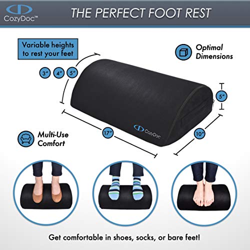 CozyDoc - CozyDoc Ergonomic Foot Rest Cushion Under Desk + Massage Ball | The Most Comfortable Footrest for Home, Office, Travel | Doctor Designed Orthopedic Foam for Feet, Knee, Back Pain Relief【Black】