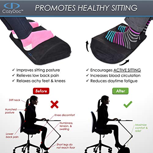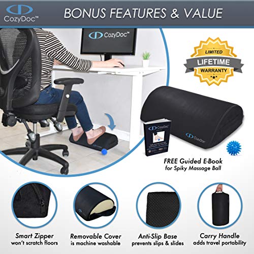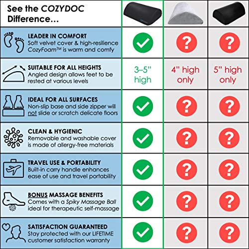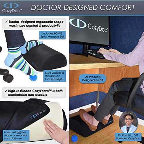 - 🎁 BONUS ADDED VALUE: CozyDoc is the ONLY footrest that comes packaged with an original SPIKY FOOT MASSAGE BALL, specially developed by physical therapists for deep tissue massage. Check your email or visit our website after purchase to claim your FREE Massage Ball GUIDED E-BOOK.