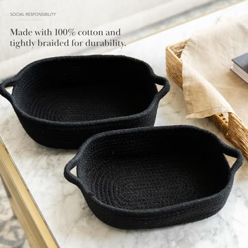 - DURABLE DESIGN. Engineered for durability, our woven storage baskets feature double stitching. The soft yet resilient handwoven rope design ensures furniture stays scratch-free during daily activities.