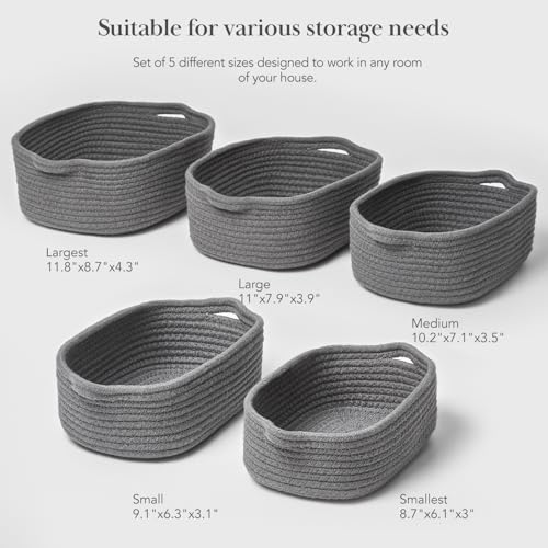 Cozytoon - 5-Piece Storage Basket Set - Durable Cotton Rope Storage Bins for Bathroom, Kitchen, Nursery, and Living Room Organization - Multi-Use Baskets for Shelves, Clothes, Towels and Laundry