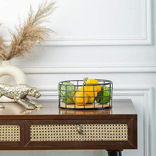 - Natural Wooden Base: Adding a touch of warmth and organic charm, the basket comes with a wooden base. The combination of black metal and natural wood creates a harmonious contrast, making it an eye-catching and stylish accessory for your home