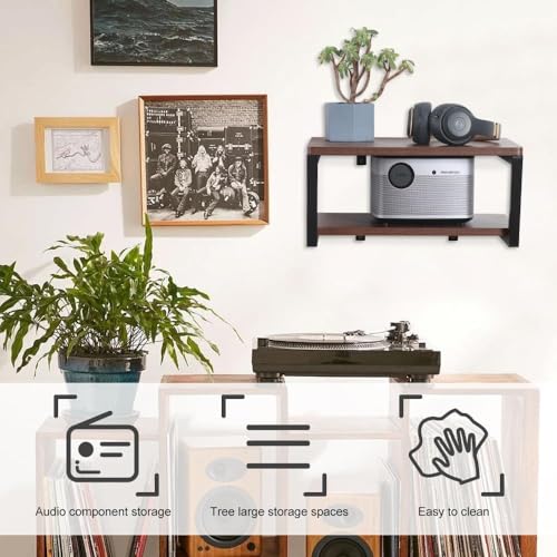 - 2-Tier Space Saving: The sizes of this 2-tier projector shelf stand is 15.7”x 11.8”x 7.6”(L x W x H). It can be easily mounted on the wall, freeing up valuable floor space, ideal for smaller spaces or to keep the area organized and clutter-free.allowing you to optimize your space.