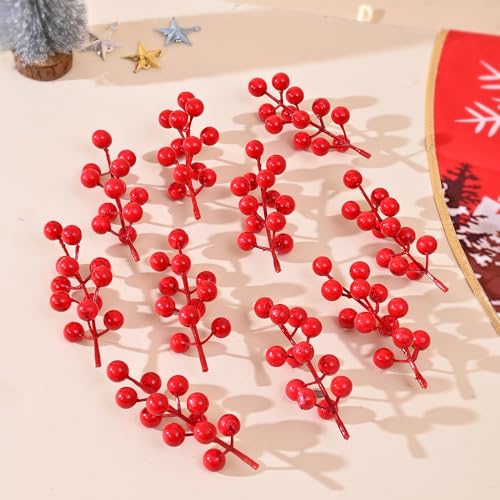 CraftVatika - CraftVatika Christmas Tree Decoration Ornaments Items, Fake Red Berry Cherry Hanging Ornaments for Xmas Tree, Christmas Decoration, Home Office, Door (10 Pieces)