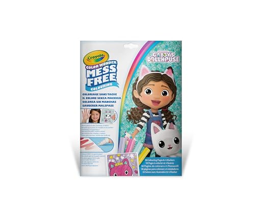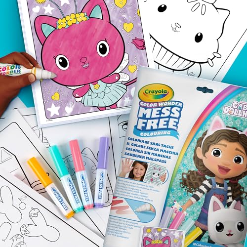 Crayola - طقم تلوين كولور وندر 75-5861 مع 18 صفحة تلوين و4 أقلام فلوماستر لا تسبب البقع ثيم جابيز دولهاوس نشاط إبداعي للأطفال 3،4،5 سنوات من كرايولا