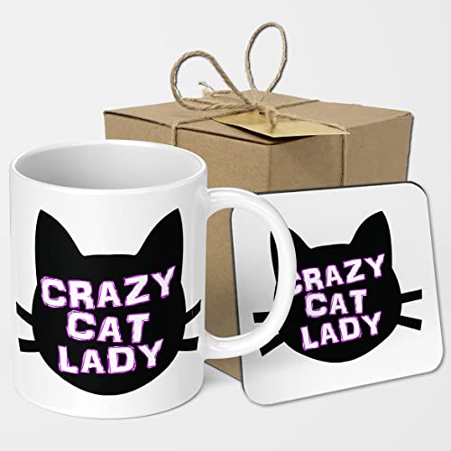 Generic - مجموعة اكواب وقواعد من كريزي كات - كوب قهوة - شاي سيراميك سعة 11 اونصة للكريسماس وعيد الميلاد وسانتا السري الام الاب بارتي بيبول