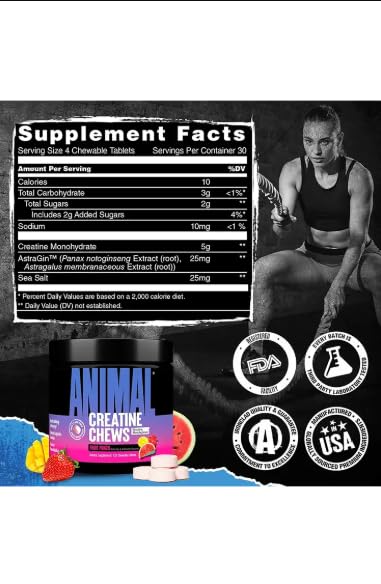NutraNova Labs - Creatine Chews – 120 Chewable Tablets | Candy Crush Flavor | Strength, Energy & Recovery Booster