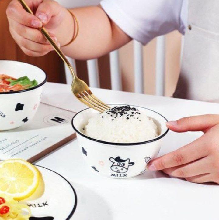 Generic - Creative Cartoon Cow Bowl and Saucer Set, Personalized Ceramic Tableware for Home and Dining Porcelain plate with cow designs, practical for microwave use (model 2)