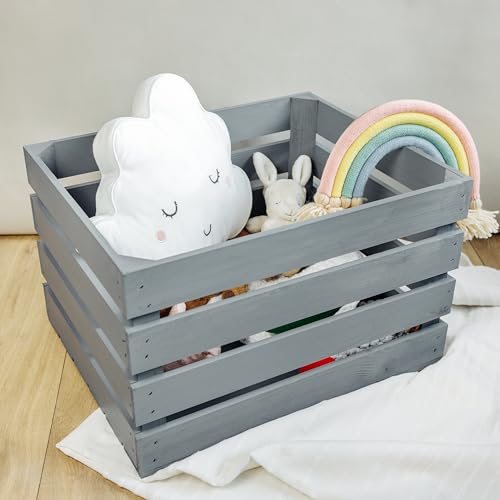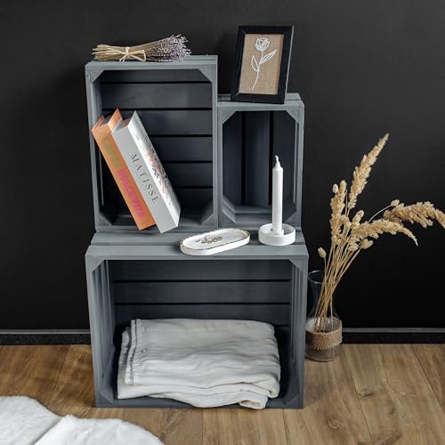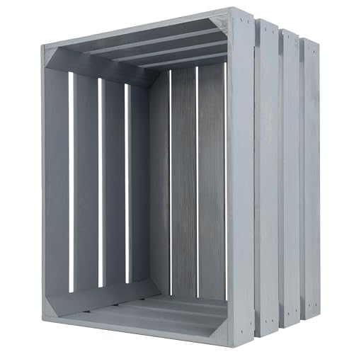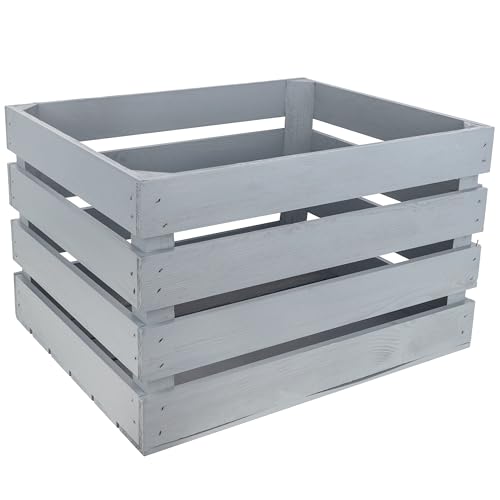 Creative Deco - Creative Deco Grey Wooden Storage Crate, 50 x 40 x 30 cm, Polished, Fruit Box, Wine Crate, Apple Box